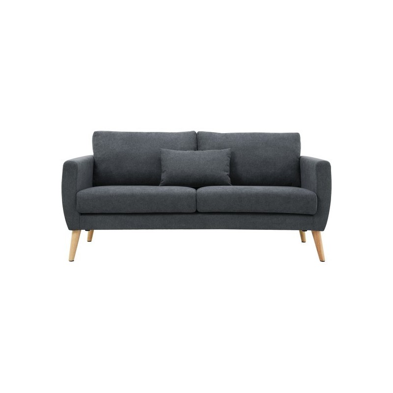 Avec sa couleur gris foncé, il trouvera facilement sa place dans tous types d'intérieurs. Matières structure : bois d'eucalyptus, pieds : bois en hévéa finition naturelle, tissu : polyester. Poids maxi supporté : 300 kg. Déhoussable. Dimensions globales (L,P,H) : 175 x 84 x 81 cm.