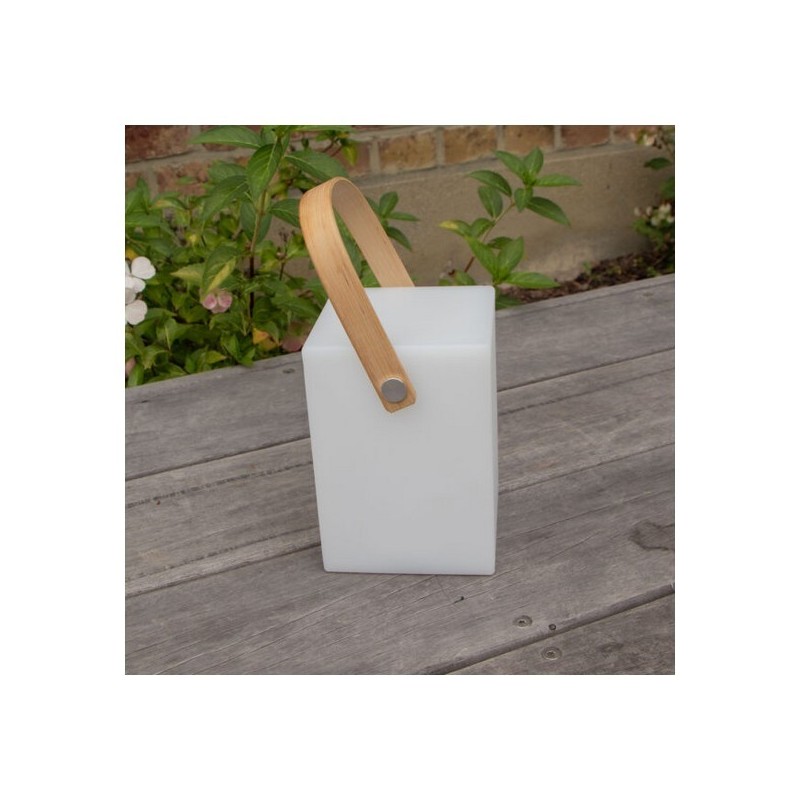 Idéale pour choisir une couleur d'ambiance lors de vos soirées autour de votre piscine ou lors d'un barbecue. Cette Lampe de table cubique lumineuse à usage nomade sans fil s'installe aussi bien dans votre salon que sur votre terrasse ou dans votre jardin. Sa anse en bambou lui confère un aspect chic et élégant. Recharge par prise. Durée d'éclairage. Variation de 8 couleurs. Résistant aux chocs. Etanche. Dimensions: 10 × 10 × 23 cm.
