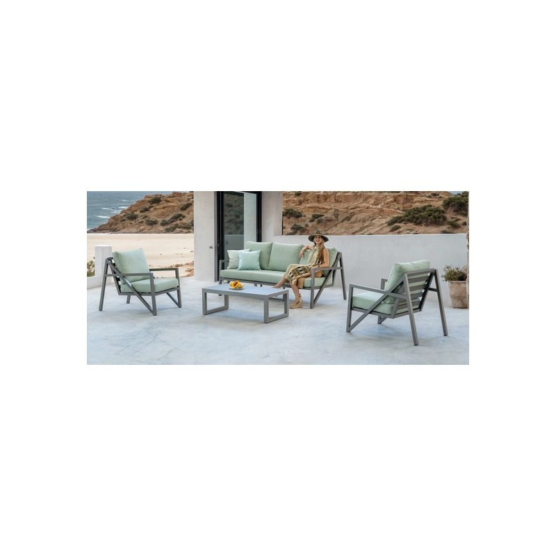 Coussins inclus avec housses en Dralon Lux (250g/m2), déperlants et résistants aux UV.