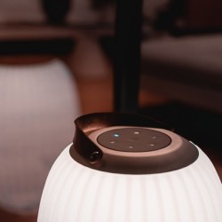 Enceinte bluetooth intégrée. Waterproof IP65. Puissance en watt: 100. Possibilité d'appairer deux appareils ensemble. 3 modes d'éclairage : flamme, couleurs, lumière continue. 3 intensités de lumière. Autonomie: 6h. Temps de chargement: 3h.