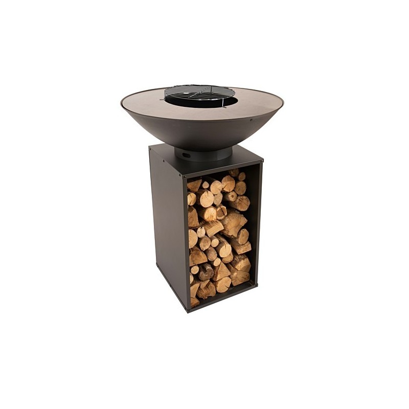 Braséro de cuisson avec réserve bois + Housse protection + Grille surélevée. Anneau de cuisson diamêtre 79,5cm - Epaisseur 4 mm en acier,. Cuve Braséro : h23 x diam80 cm – Epaisseur 1,8 mm,. Base: 115 x 51 x h74cm – Epaisseur 1,8 mm,.