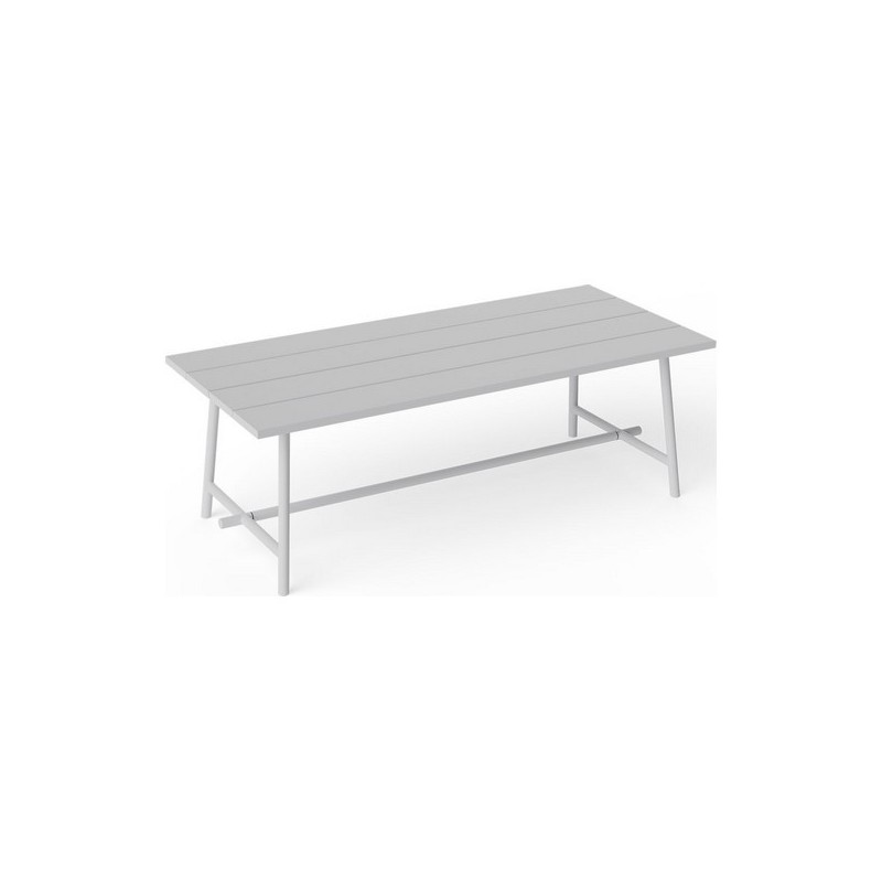 Utilisation en extérieur. Légère et résistant à toutes les intempéries et aux U.V. Base en acier lourd. Matériau : aluminium. Pieds pliables. Dimensions : 220 x 100 x 76 cm.