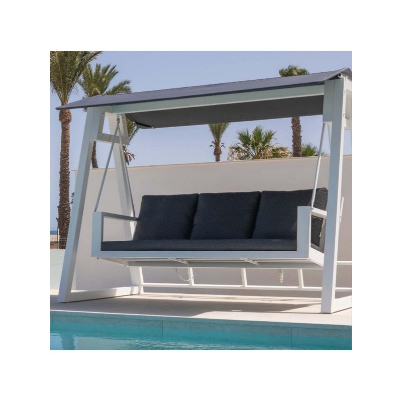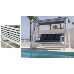 Balancelle de jardin. Nombre de places : 3 places. Structure : 100 % aluminium. Finition structure : Blanc. Coussins : inclus. Housses : Déhoussables. Tissu : AZALEA LUX. Composition tissu : 100 % acrylique – 250 g/m2. Résistance UV : Classe 8 Résistance abrasion : 30 000 cycles. Tissu : Déperlant, anti moisissure, antibactérien, respirant. Entretien : Lavage machine 40 degrés C – Repassage max 150 degrés C. Livrée démontée. Particularité : Modèle XL grand confort. Dimensions : Longueur : 250 cm. Profondeur : 150 cm. Hauteur : 235 cm. Hauteur d’assise : 40 / 105 cm. Délais d'expédition : 10 jours.