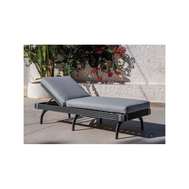 Bain de soleil. Nombre de places : 1 place. Structure : 100 % aluminium. Finition structure : Anthracite / Corde Grise. Positions dossier : 5 positions réglables Coussins : Inclus. Housse : Déhoussable. Tissu : AZALEA – Gris LUX. Composition tissu : 100 % acrylique – 250 g/m2. Résistance UV : Classe 8. Résistance abrasion : 30 000 cycles. Tissu : Déperlant, anti moisissure, antibactérien, respirant Dimensions matelas : Long 200 cm – Large 80 cm – Hauteur 38 cm Entretien : Lavage machine 40 degrés Repassage max 150 degrés C. Dimensions : 200 x 80 x 50 cm. Délais d'expédition : 10 jours.