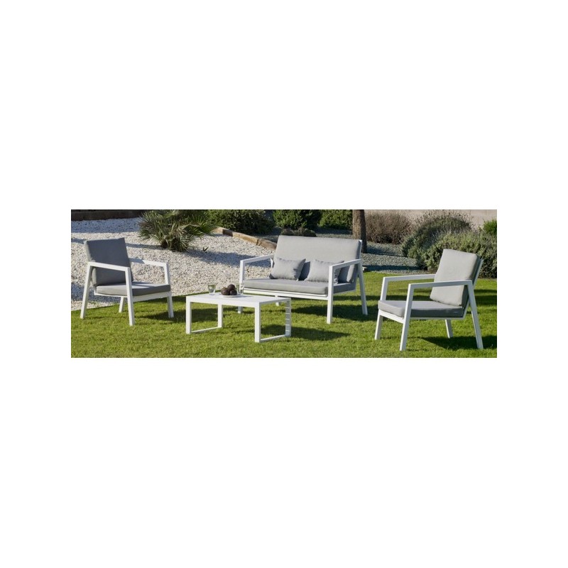 Ensemble de 4 pièces, 4 assises empilables, structure tout aluminium en finition blanc: