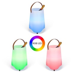 Seau lumineux 12 LED RGB. Cuve étanche pour glaçons. 16 couleurs changeantes. 5 modes de diffusion : fixe, aléatoire, fondu, transition, flash. Batterie 2000 mAh, autonomie jusqu’à 10 h. Poignée de transport. 3 pieds antidérapants. Câble USB et télécommande inclus.
