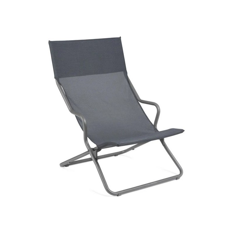 Structure: en acier galvanisé, peinture 100 % polyester haute tenue aux UV. Absence de travers sur le devant de l'assise pour un meilleur confort. Toile: amovible et remplaçable. Accoudoir en 1 pièce. Traverse en haut du dossier pour faciliter la manipulation, pliable et facile à ranger. Patin de protection. Usage intérieur et extérieur.