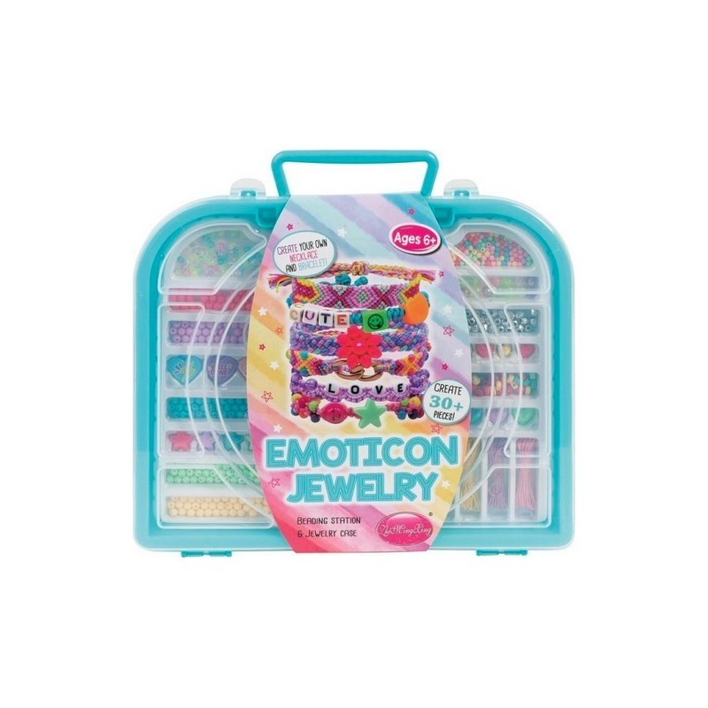 Set de perles émoticônes : tout pour réaliser des bracelets colorés, boucles d'oreilles, colliers, bagues, bijoux fantaisies avec des perles de plusieurs types. 2 modèles assortis. Âge : dès 5 ans. Assortiment de 2 modèles aléatoires.