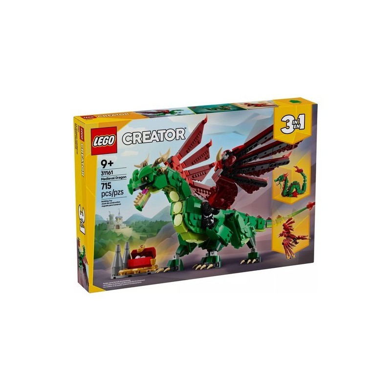 Création de dragons médiévaux. Type : Set de construction avec dragon, chevalier et accessoires. Âge recommandé : À partir de 9 ans. Nombre de pièces : 715.