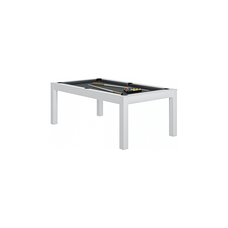 Véritable billard transformable en table. Ardoise monobloc. Réceptacles de billes incorporés. Pieds en bois massif sur vérin de réglage. Accessoires inclus :16 billes diam 57, triangle, 2 queues, craie. Dimensions : Extérieur : 2.03 x 1.16 m - Intérieures : 1.72 x 0.85 m. Fabrication française. Livraison RDC/ pas de porte. délai de livraison sous 6 semaines.