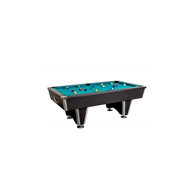 Tapis de jeu professionnel, bandes de caoutchouc à haut rendement. Ardoise tapissée de drap professionnel, Vérin de réglage sous chaque pieds assurant la stabilité. Retour central des billes Accessoires inclus : un jeu de 16 billes numérotées d'un diamètre de 5,7 cm, un jeu de billes pool anglais (rouge et jaune) d'un diamètre de 5,7 cm, 2 queues, 1 triangle, 1 craie et 1 brosse. Fabrication française. Dimensions extérieures : 2,10 x 1,18 m - Intérieures : 1,83 x 0,915 m. Livraison à l'intérieur. délai de livraison sous 6 semaines.