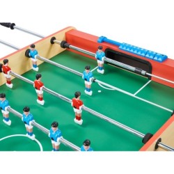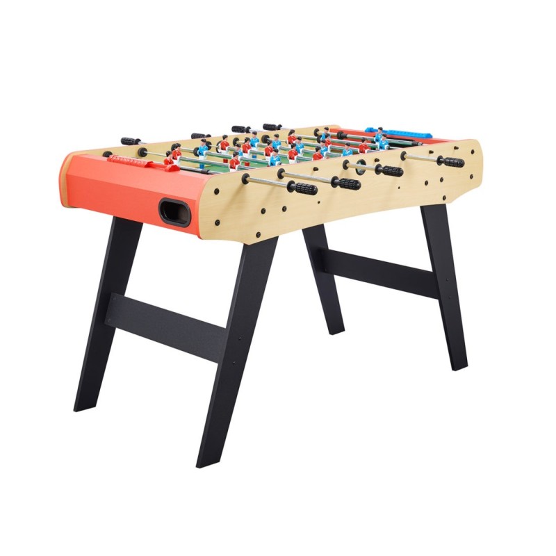 Baby foot style café avec barres télescopiques en acier, retour latéral des balles, lanceur de balles et compteurs de points. Bon contrôle de la balle. Tapis de jeu et meuble en panneau de médium décor hêtre. Poignées longues. Livré avec 2 balles plastiques. Fabrication française. Dimensions jeu : 128 x 63 x 11 cm. Livraison RDC/ pas de porte. délai de livraison sous 6 semaines.
