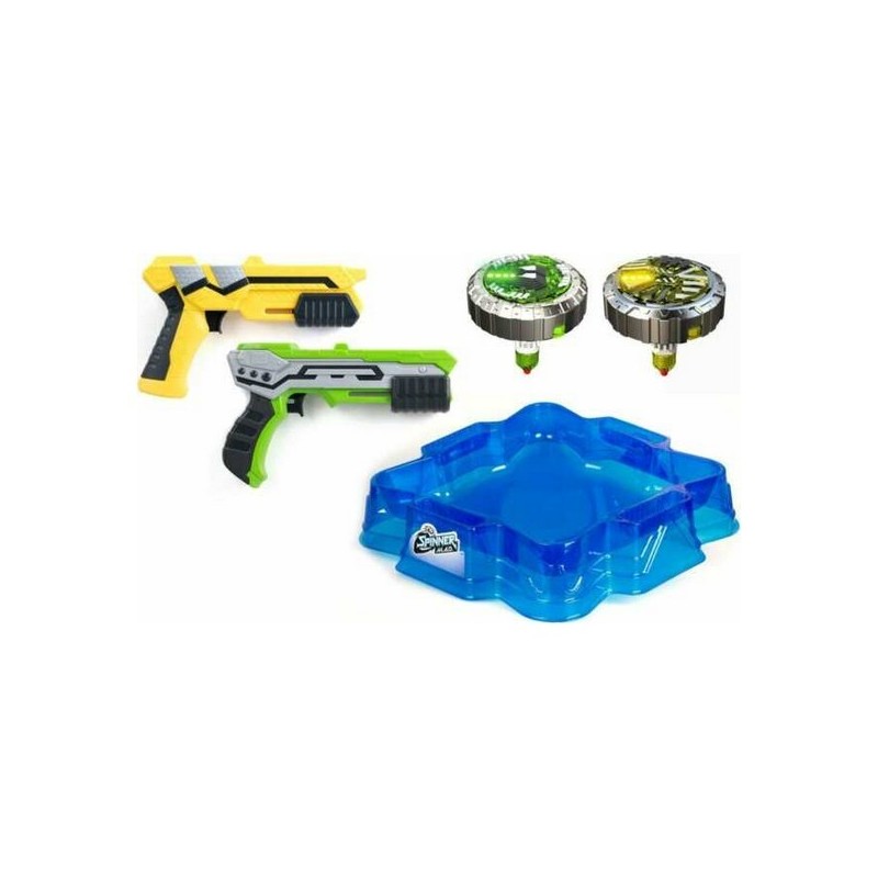 Ce pack deluxe deux joueurs inclut 2 blasters, 2 toupies et une arène.