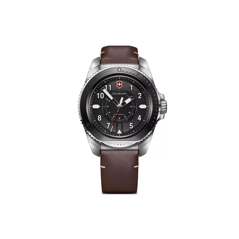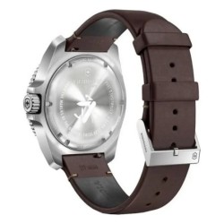 Type : montre analogique (quartz). Diamètre boîtier : 43 mm. Étanchéité : 20 ATM ( environ200 m) — adaptée pour baignade et plongée de surface. Matière du boîtier : acier inoxydable. Verre : saphir, résistant aux rayures. Bracelet : cuir. Fonctions : heures, minutes, secondes, date. Résistance : antichoc et antimagnetique.