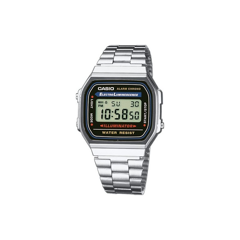 Fonctions : heure, date, jour, alarme, chronomètre, format 12 h / 24 h, éclairage.
