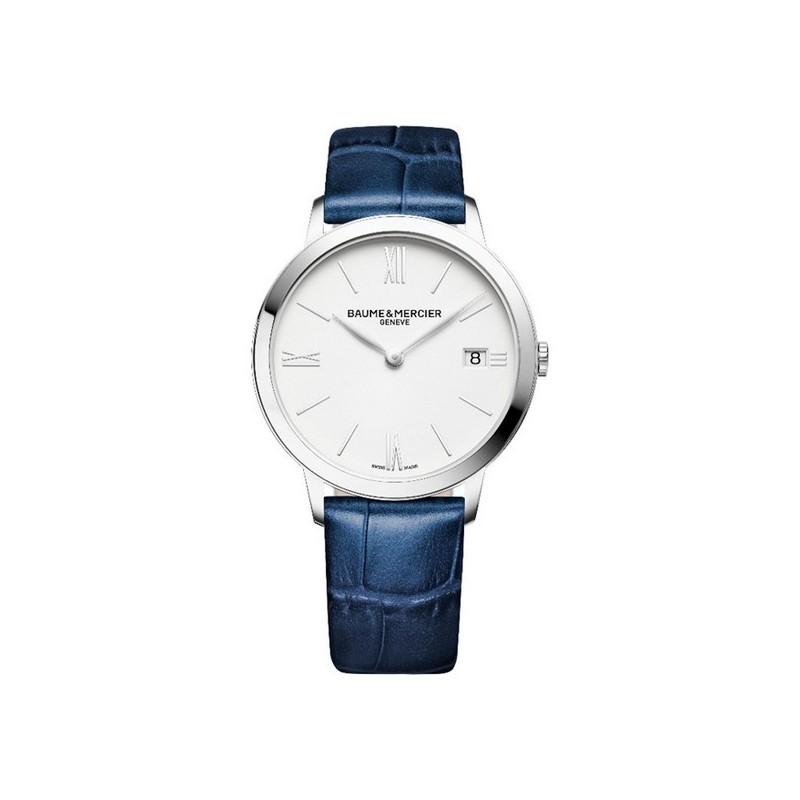Cadran blanc, aiguilles rhodiées, affichage chiffres romains, guichet de date.