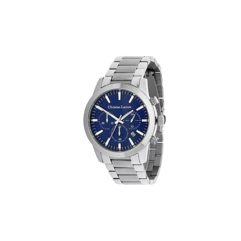Dimension: Dia. 42 mm. Couleur du cadran: argent, bleu foncé. Résistance à l'eau: 5 ATM. . Matière du bracelet: acier inoxydable.