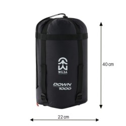 Composé à 90% de duvet d'oie blanc, l'enveloppe extérieure et intérieure est composée de Nylon 380T. Températures Extrême/Limite confort/Confort sont : 31/16/10 degrés. Il bénéficie de la technologie Ajustable Colar. Livré avec sacoche de compression et filet de stockage. Volume rangé dans sa sacoche 8,5 litres, dimension 220 x 80 cm.