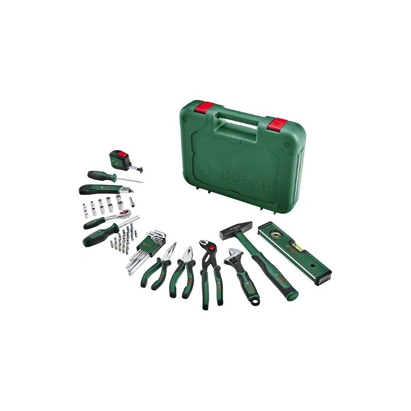 Set mixte complet de 52 pièces avec outils à main et accessoires robustes.