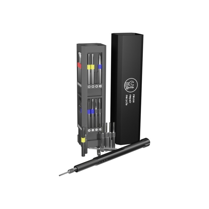 Tournevis de précision avec 28 embouts et deux accessoires.