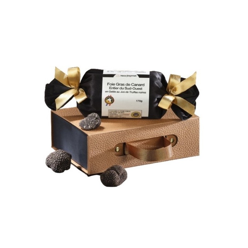 Foie Gras de canard entier du Sud-Ouest en Gelée au jus de Truffes noires 170g.