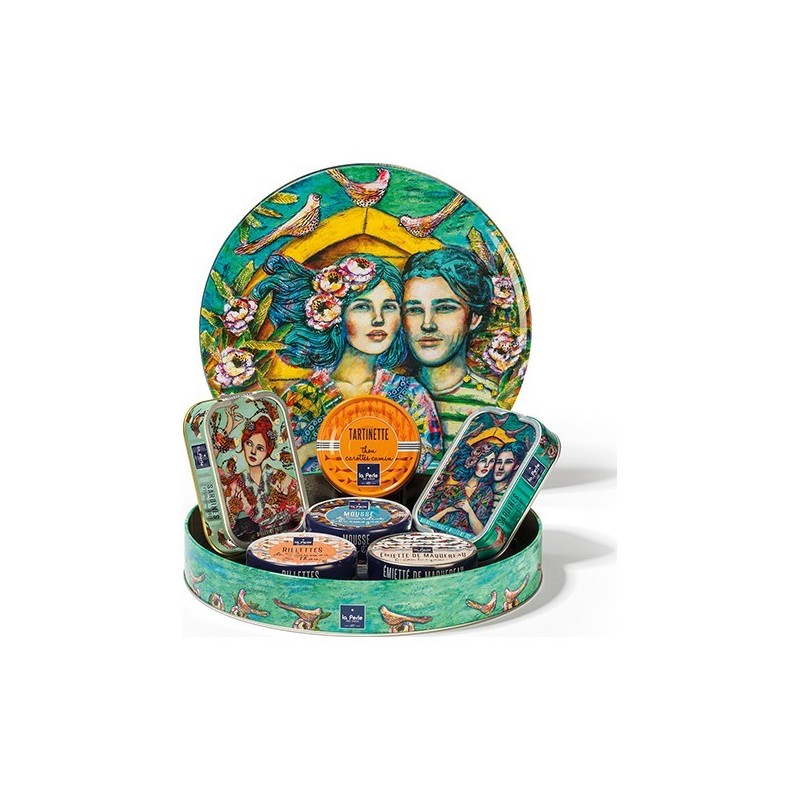 Le coffret comprend : Une boîte de sardines millésimées 2022 et une boite de sardines millésimées 2017 D. Cossais. Une boîte d'émietté de maquereau façon basquaise de 80 g. Une boîte de mousse de sardines à l'armagnac de 80 g. Une boîte de tartinette de thon carotte cumin de 80 g. Une boîte de rilletes de saumon et thon de 80 g. La composition de ce coffret est susceptible d'évoluer selon la disponibilité des produits.