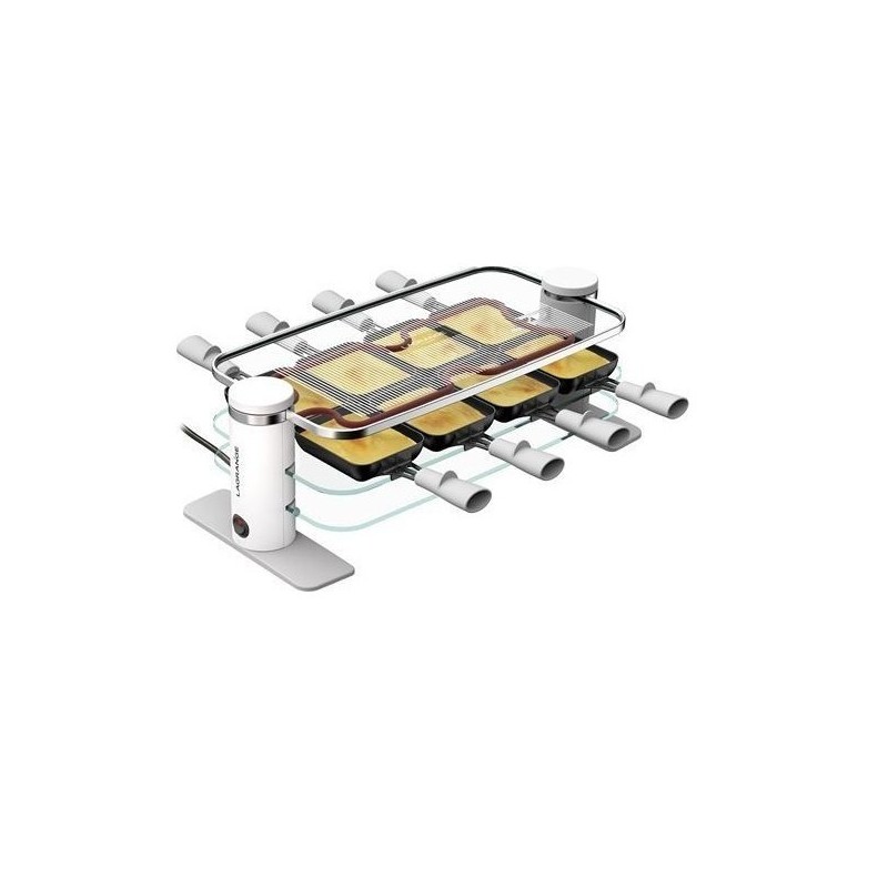 Poêlons profonds : faites une pause au cours du repas grâce aux reposes poêlon sur le plateau inférieur. Poêlons en fonte d'aluminium avec revêtement antiadhésif. Colonnes et pieds en plastique, plateaux en verre avec cerclage en acier inoxydable. Comporte une fonction maintient au chaud et range poêlons pour faire une pause au cours du repas ou maintenir son fromage au chaud. Puissance : 1000 watts. Dimensions: 46 x 20.8 x 15.6 cm.