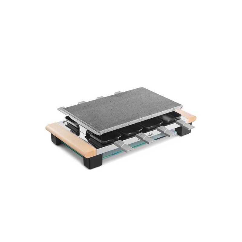Multifonction : appareil doté de 2 fonctions raclette et cuisson sur pierre. Pratique : repose poêlons intégré. Facile à utiliser : interrupteur marche/arrêt et long cordon amovible de 2m. Pierre de cuisson naturelle. Repose-poêlons accessible sur 360degré(s) (en verre trempé).