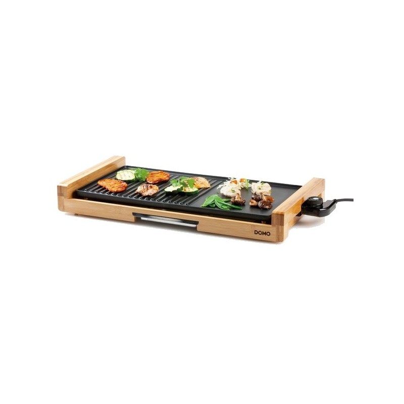 Puissance élevée et finition élégante : Avec une puissance de 2200 W et une finition en bois de bambou, ce teppanyaki allie performance et design raffiné. Double surface de cuisson : Plaque polyvalente avec une partie plate pour saisir viandes ou poissons et une partie grill pour les légumes ou autres aliments. Pratique et propre : Bac de réception intégré pour recueillir l’excès de graisse ou d’eau, facilitant ainsi un usage plus sain et un nettoyage simplifié. Contrôle précis de la cuisson : 5 niveaux de puissance pour adapter la température selon les aliments à préparer. Grande surface et format compact : Offre une large surface de cuisson tout en restant facile à installer, avec des dimensions de 29,7 x 65,2 x 7,5 cm (longueur x largeur x hauteur).