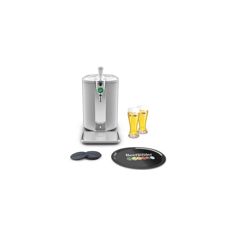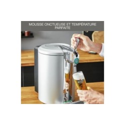 Puissance : 65 W. Temps de conservation : 30 j. Capacité Fûts 5 L. 8 variétés de fûts compatibles. Hyper compact. Contrôle de la température. Voyant lumineux témoin fraicheur. Finition argent métal. Sous bocs, mini plateau et deux verres inclus. Dimensions : 24.2 x 37.8 x 39.2 cm.