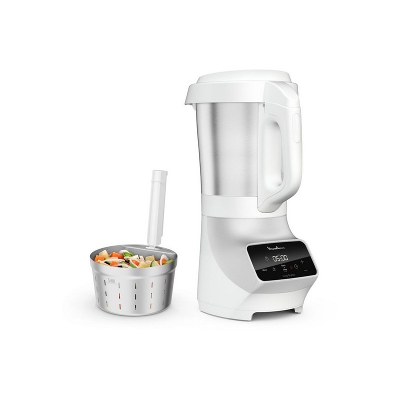 Puissance : 1100 W, capacité utile du bol en inox brossé : 2L. Ecran tactile design et ergonomique. Température de cuisson 60-100degré(s)C. Capacité utile du bol en inox brossé : 2L. 5 vitesses, 4 programmes automatiques : velouté, mouliné, vapeur, autoclean + mode manuel. Fonction chauffante, glace pilée, smoothie, soupe et vapeur. Eléments compatibles lave-vaisselle. Dimensions : 26 x 41,1 x 18,5 cm. Fabriqué en France.