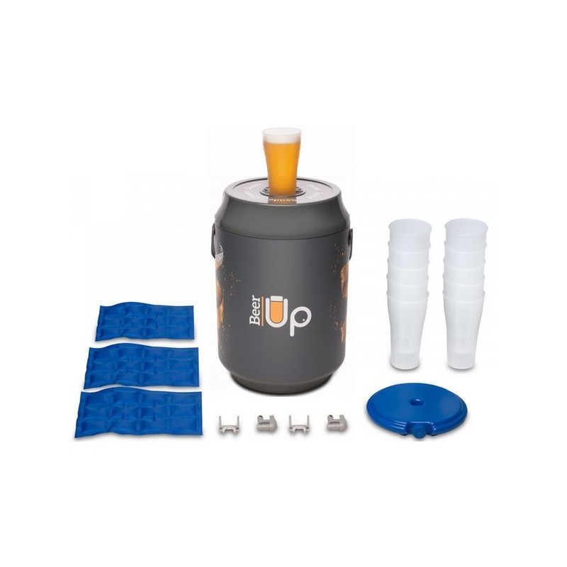 Pack complet avec la tireuse: 3 films accumulateurs de froid, 1 bloc accumulateur de froid, 1 kit de remplissage (2 leviers + 2 buses), 10 verres Beer Up.