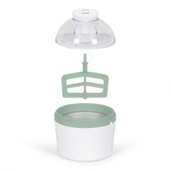 Capacité 1 L. Temps de pré-congélation 8-12 H. Temps de réalisation de 20 à 30 minutes. Cuve à accumulateur de froid en aluminium. Puissance 12 W. Accessoires : pâle de mélange, moule pour 7 glaces, 7 bâtonnets inclus. Couvercle transparent avec ouverture.