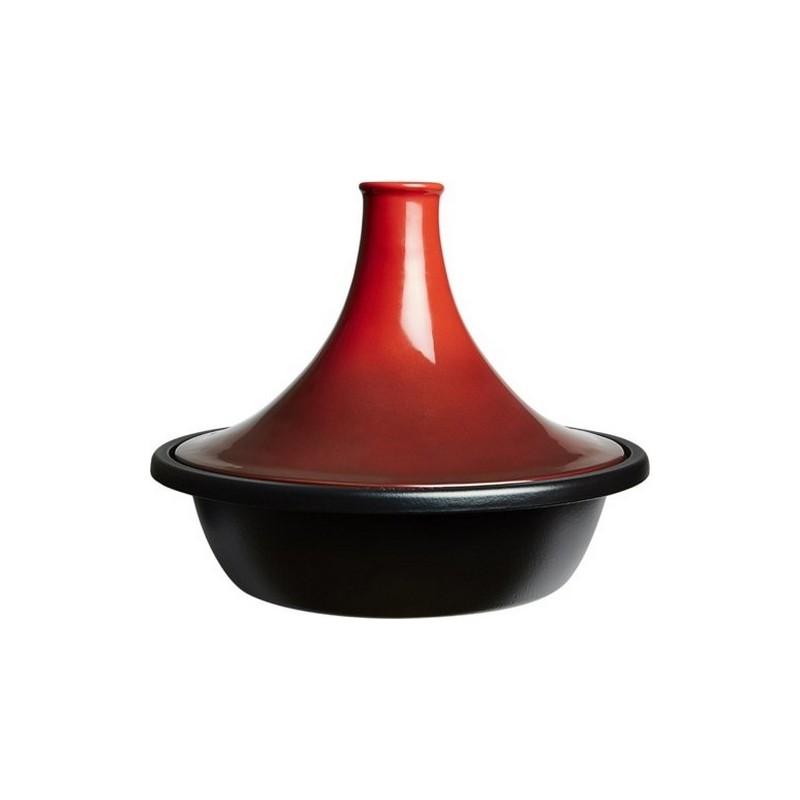 Base en fonte émaillée et cône en céramique: la vapeur se condense en fines gouttelettes dans le cône et retombent sur les ingrédients pour intensifier les saveurs du plat mijoté.