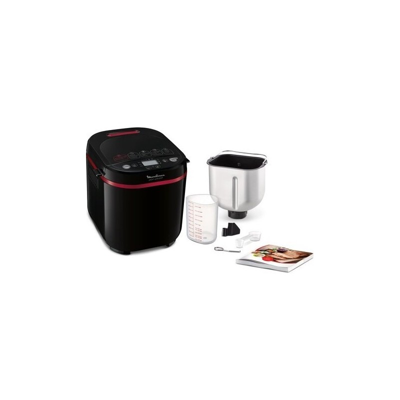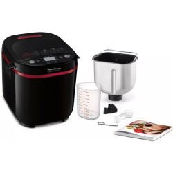 Puissance 720 W. Capacité : 1 Kg. Réglage du poids (500 g - 750 g - 1kg). 3 niveaux de dorage. 17 programmes (dont 4 programmes sans gluten). Accessoires : Gobelet mesureur, crochet et cuillère doseuse.