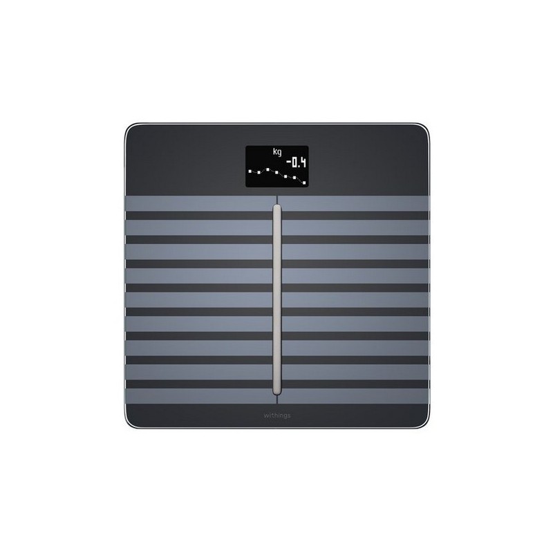 Composition corporelle : Poids (kg, lb, st), tendance de poids, pourcentage d'eau et de masse grasse, masse musculaire et osseuse.