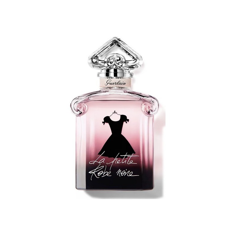 Le flacon mythique, coeur inversé est revisité avec audace et modernité. Dans sa transparence cristalline, dégradée du noir au rose poudré, se dévoile en ombre chinoise la silhouette de la petite robe noire, prête à danser !