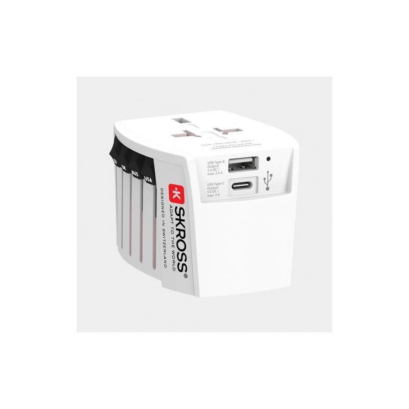 Adaptateur de voyage universel MUV 2-poles avec USB - blanc