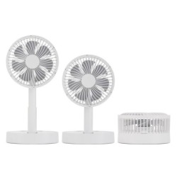 4 vitesses. Minuterie 1h, 2h, 4h ou 8h. Nomade et pliable. Batterie rechargeable Lithium 1800 mAh. Jusqu’à 11 heures d’autonomie. Temps de chargement : 3,5 h. Câble de charge USB A-USB C inclus. Socle antidérapant. 15 cm de diamètre.