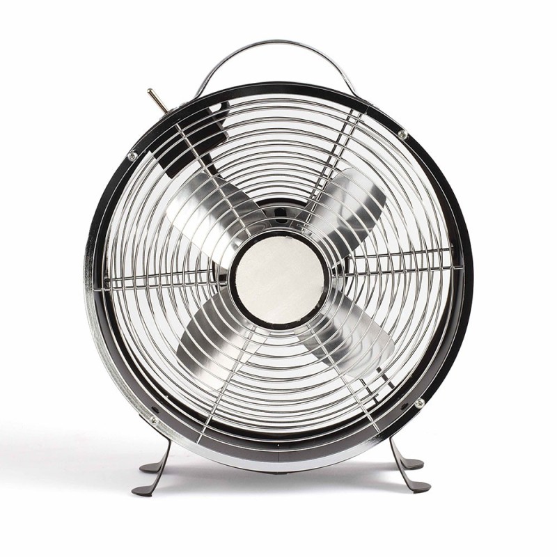 diamètre 25 cm. 2 vitesses. Grille de protection chromée, 4 pales en aluminium. Poignée de transport. Protection anti-surchauffe.