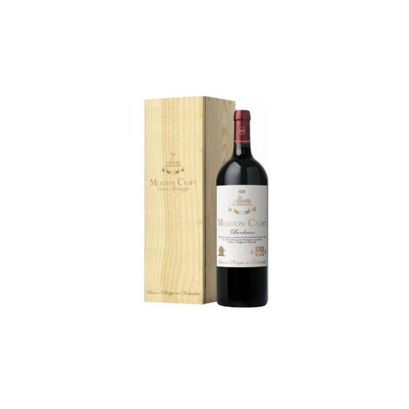 Vin rouge Mouton Cadet Heritage AOC Bordeaux caisse en bois 150 cl