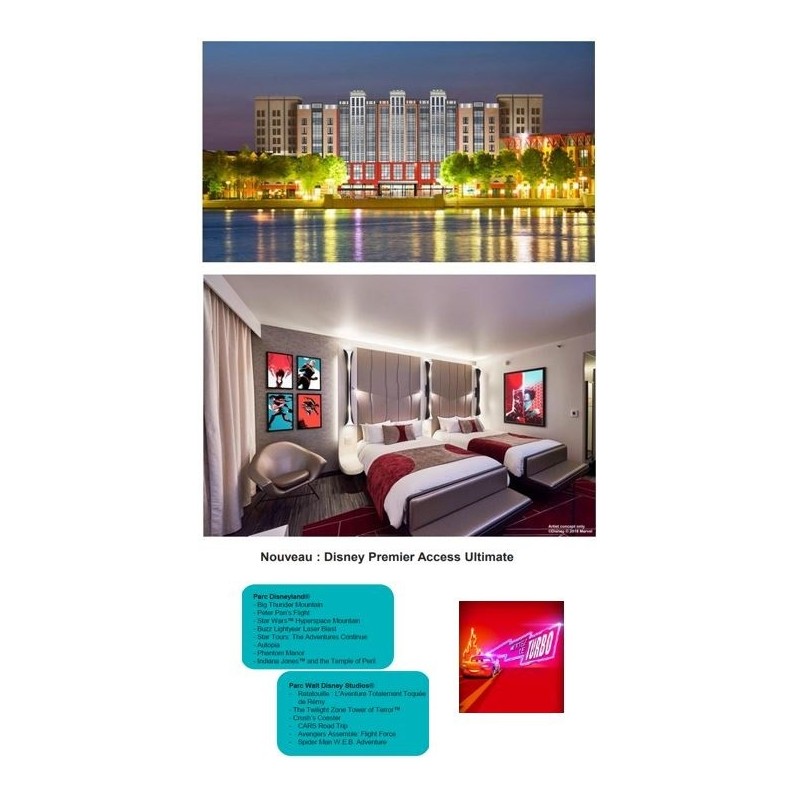 - Pass Disney Premium Acces Ultimate offrant la voie rapide à de nombreuses attractions populaires (valable 1 seule journée de votre choix et 1 seul passage par attraction)